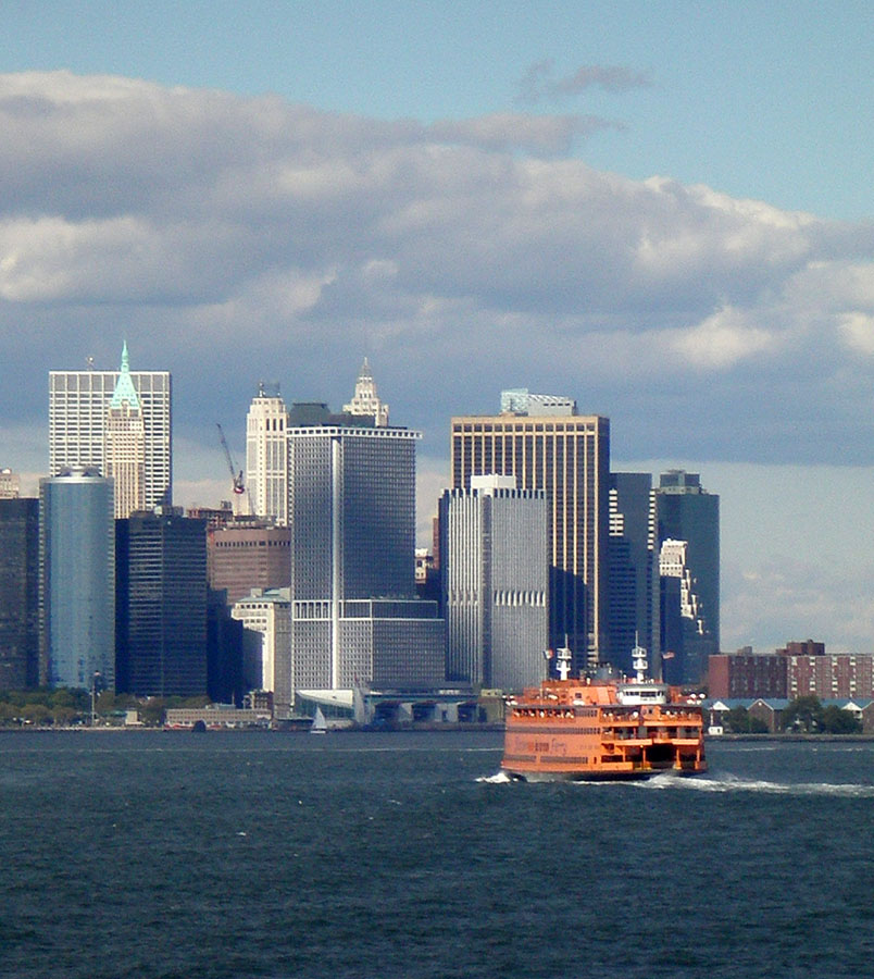 The bright orange ferries stand out so well against the prevailing blues and grays of the water, sky, and buildings. It was a somewhat hazy day, and I just needed to intensify the colors a bit, which I did using a Levels adjustment layer. I also cropped out a bit of the sky at the top to ensure that the ferry and buildings didn’t get lost in the overall picture.