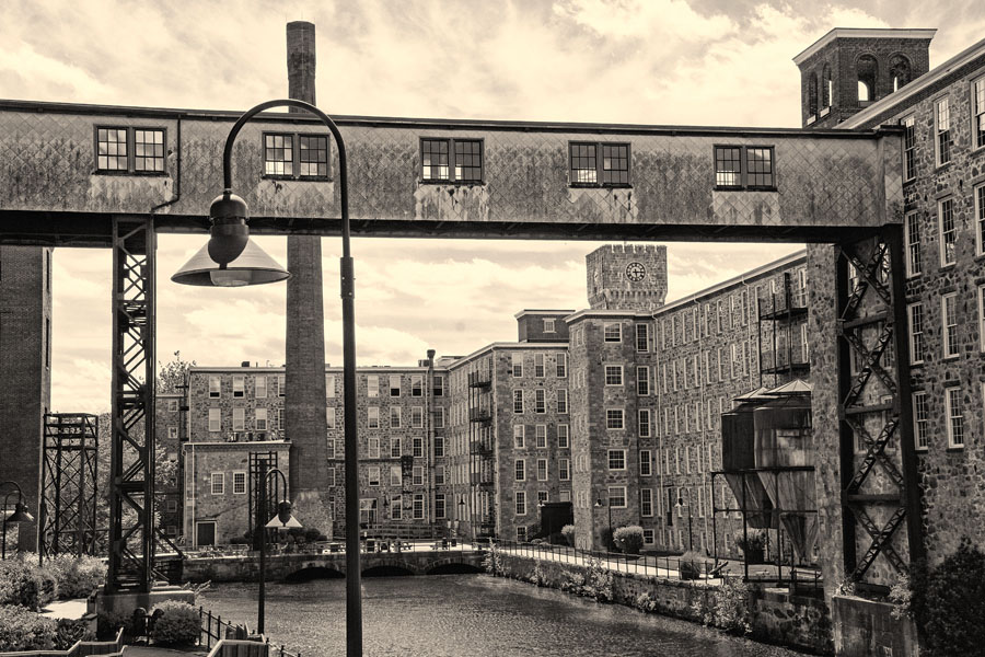 Recently I posted about my experiences in shooting and postprocessing images of some historic buildings in Rhode Island, choosing images of two different sites for examples. One building, the Bradford Soap Factory, is still in use for its original purpose; the other, the Royal Mills, has been converted from its previous industrial use to a block of residential apartments. What they have in common, however, is that both are in essentially urban settings and are still in use. This enabled me to be quite consistent in my postprocessing; in each case it was the same preset in Topaz Adjust 5 and Nik Silver Efex Pro 2 that I could use with effect for color and monochrome versions respectively.
