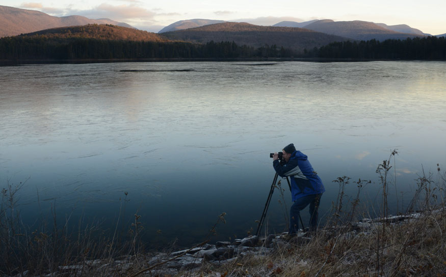 On the morning after Christmas my son, Anton, and I went out to shoot at Cooper Lake. One advantage to having a great place like this nearby is that you become familiar with the optimum times to be there and the optimum angles from which to shoot, depending on when you know the good light will be hitting a specific place. Since the path bordering Cooper Lake curves around, you can start at one spot for first light and then make your way to the next spot when the sun is slightly higher. (A lake surrounded by mountains has its own challenges when it comes to allowing for differences from the official sunrise and sunset times.) And while you’re waiting for the light to be in the right position, there’s always the beaver pond, or close-ups on the opposite side of the path.